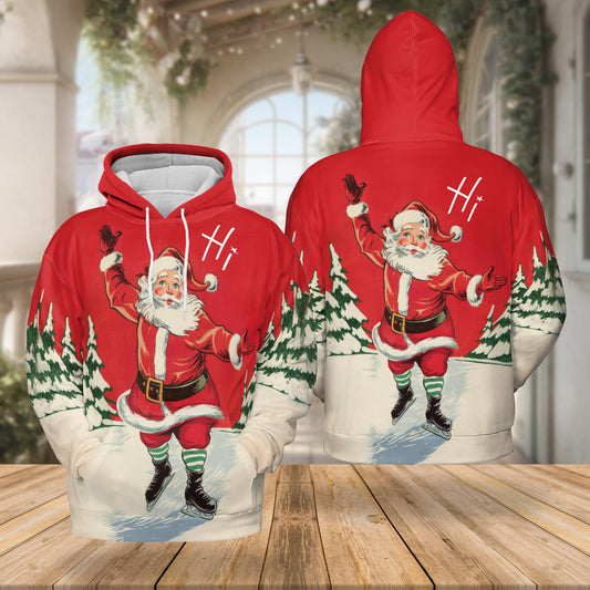 Neteco Ice Skating Santa 3D Hoodie with Front Pocket...