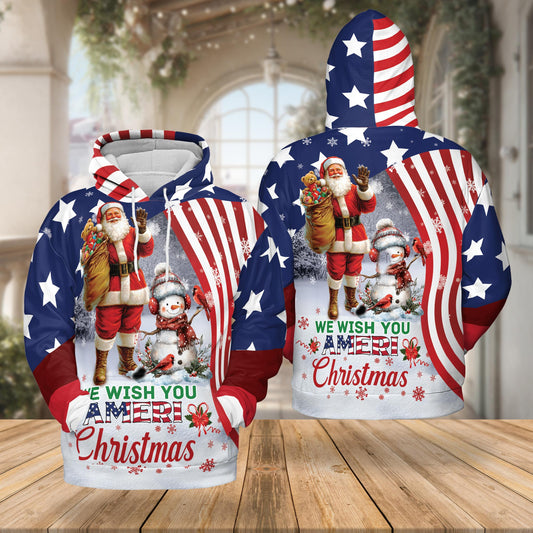 Netecom We Wish You Ameri Christmas 3D Hoodie with F...