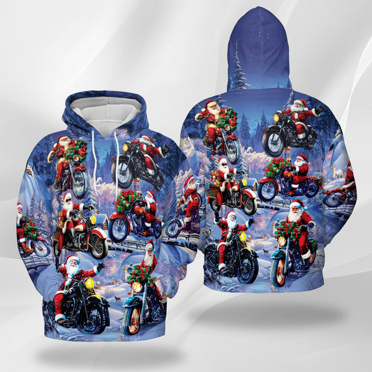 Netecom Santa Claus Riding Motorcycle Print Hoodie w...