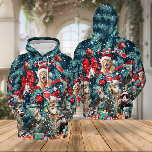 Netecom Christmas Cat 3D Hoodie with Front Pocket, U...