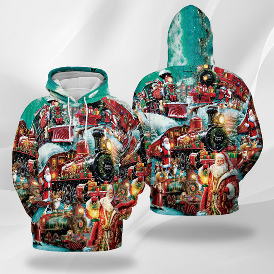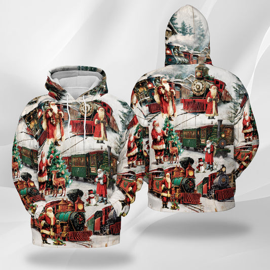Netecom Santa Claus Christmas Train Print Hoodie wit...