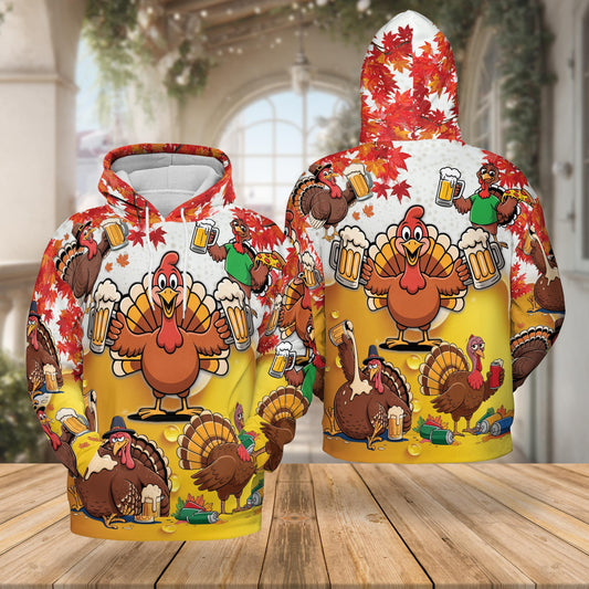 Netecom Funny Drunk Turkey Thanksgiving 3D Hoodie wi...