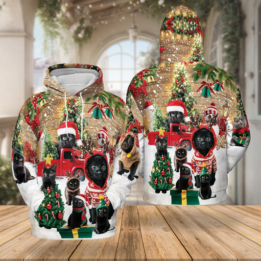 Netecom Black Cat Christmas 3D Hoodie with Front Poc...