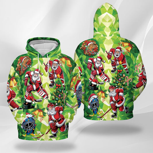 Netecom Santa Claus Ice Hockey Christmas Print Hoodi...
