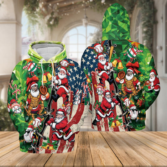 Netecom Baseball Santa USA Flag Christmas 3D Hoodie ...