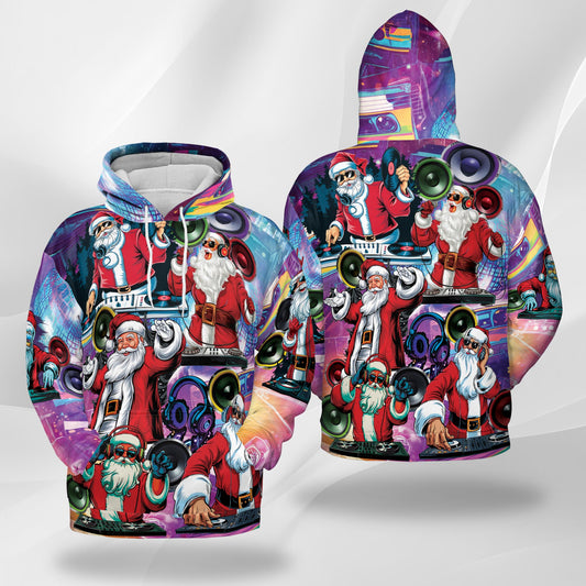 Netecom DJ Santa Claus Christmas Print Hoodie with F...
