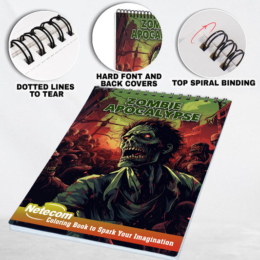 Zombie Apocalypse Spiral Bound Coloring Book, 30 Cha...