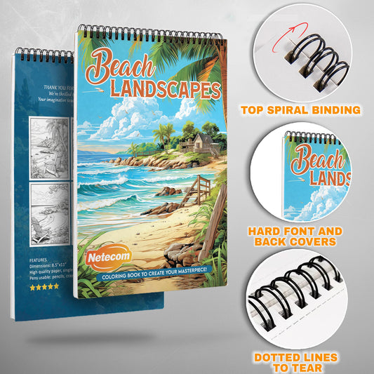 Beach Landscapes Spiral Bound Coloring Book, Beautif...
