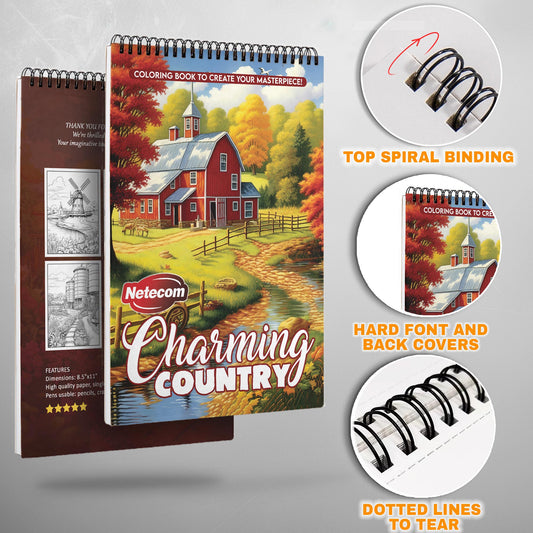 Country Farm Spiral Bound Coloring Book, Rustic Farm...