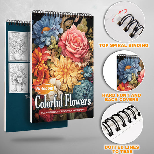 Colorful Flowers Spiral Bound Coloring Book, Vibrant...