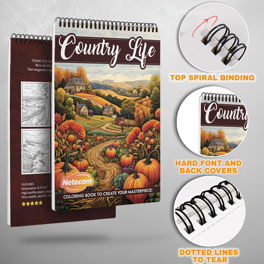 Country Life Spiral Bound Coloring Book, Idyllic Cou...