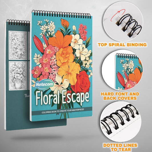 Floral Escape Spiral Bound Coloring Book, Escape int...