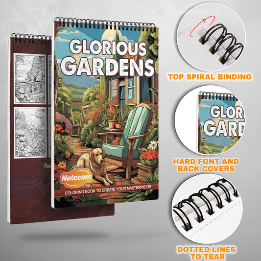 Glorious Gardens Spiral Bound Coloring Book, Lush Ga...