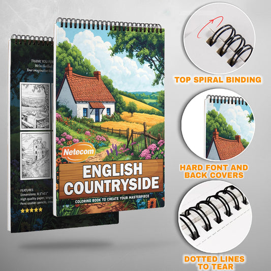 English Countryside Spiral Bound Coloring Book, Tran...