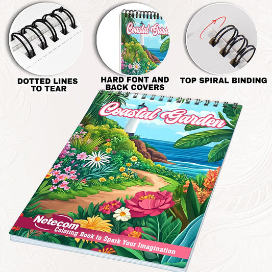 Netecom Coastal Garden Coloring Book for Adults, Spi...