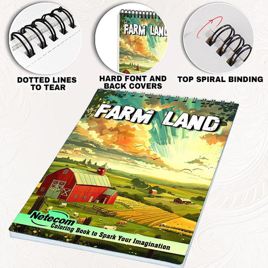 Netecom Farm Land Coloring Book for Adults, Spiral B...