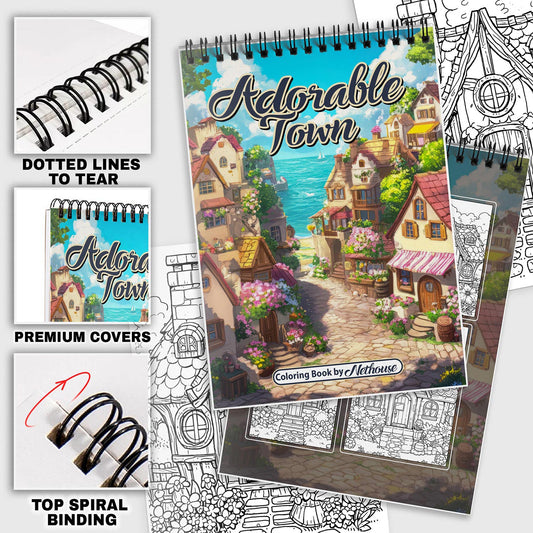 NETHOUSE Adorable Town Coloring Book For Adults Rela...