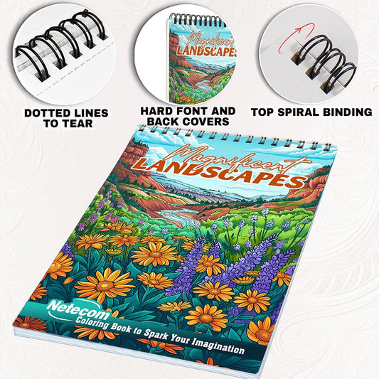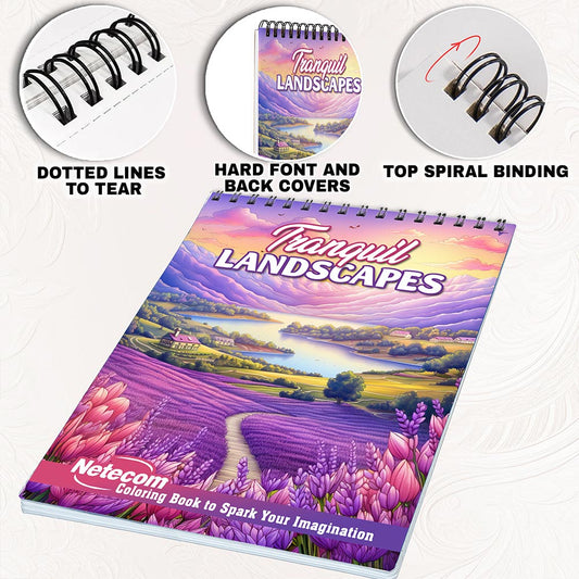 Netecom Relaxing Landscape Coloring Book Spiral Boun...
