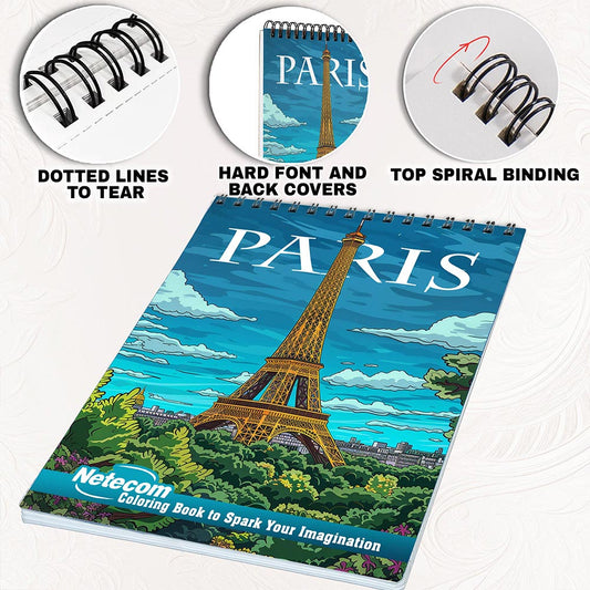 Netecom Paris Coloring Book for Adults, Spiral Bound...