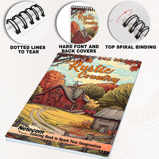 Netecom Rustic Country Coloring Book for Adults, Spi...