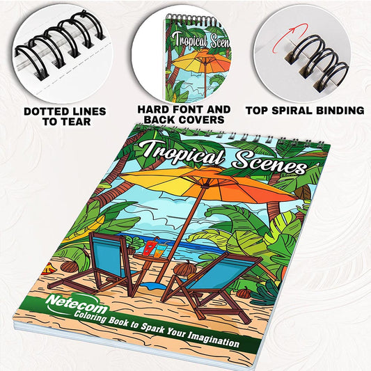 Netecom Tropical Scenes Coloring Book for Adults, Sp...