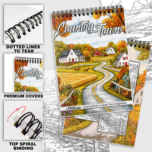NETHOUSE Country Town Spiral Coloring Book for Adult...