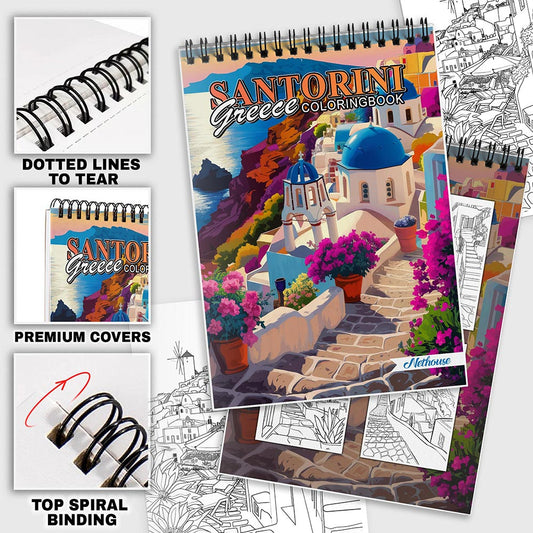 NETHOUSE Santorini Greece Coloring Book For Adults R...