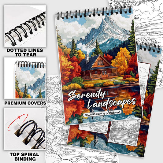 NETHOUSE Serenity Landscapes Spiral Coloring Book fo...