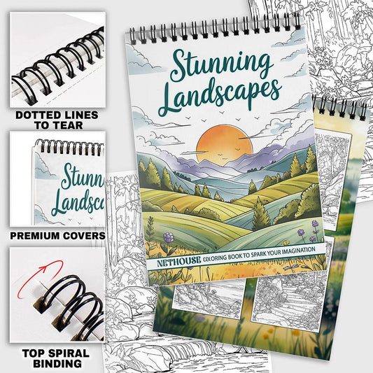 NETHOUSE Stunning Landscapes Spiral Coloring Book fo...