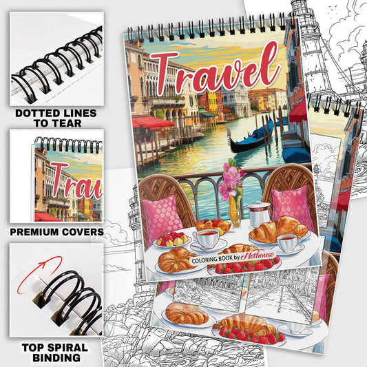 NETHOUSE Travel Spiral Coloring Book for Adults Rela...