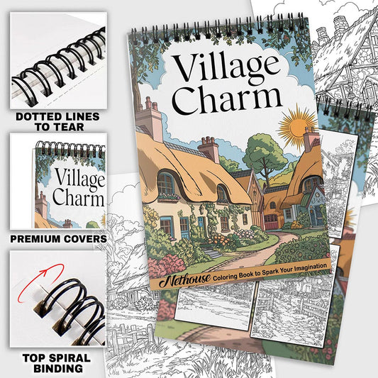 NETHOUSE Village Charm Spiral Coloring Book for Adul...