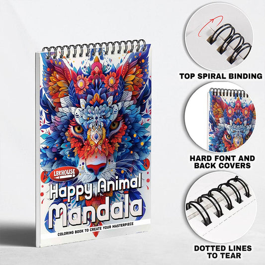 LBKHOUSE Happy Animals Mandala Coloring Book Spiral ...