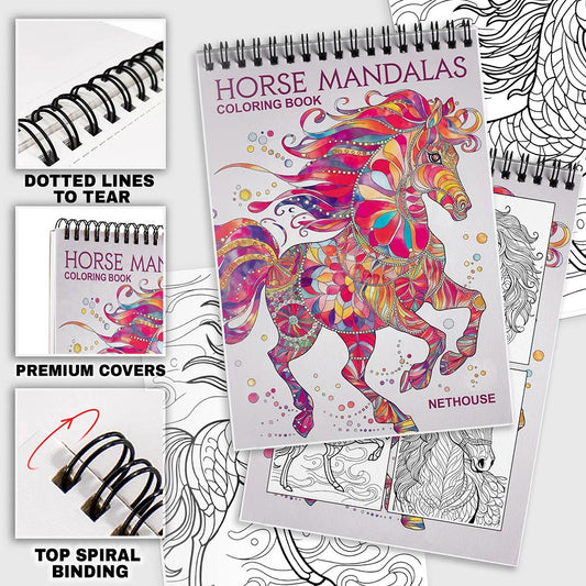 NETHOUSE Horse Mandalas Spiral Coloring Book for Adu...