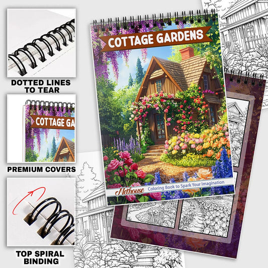 NETHOUSE Cottage Gardens Coloring Book For Adults Relaxation & Stress Relief, 30 Coloring Pages of Blooming Cottage Gardens, Charming Pathways, Rustic Flowers, and Peaceful Nature Corners
