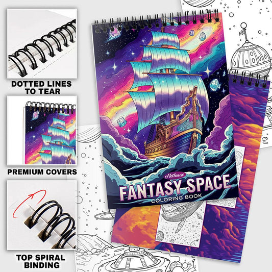 NETHOUSE Fantasy Space Spiral Coloring Book for Adults Relaxation & Stress Relief, 30 Coloring Pages of Surreal Cosmic Landscapes, Mystical Planets, Celestial Patterns, Astronaut
