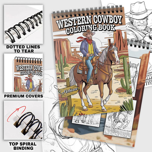 NETHOUSE Western Cowboy Spiral Coloring Book for Adults Relaxation & Stress Relief, 30 Stunning Coloring Pages of Cowboy, Horses, Desert Landscapes and Rustic Western Scenes