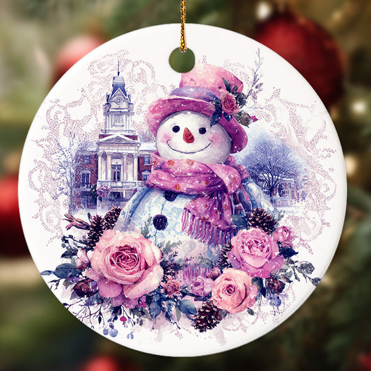 Netecom Vintage Pink Snowman Christmas Ornament, Flo...