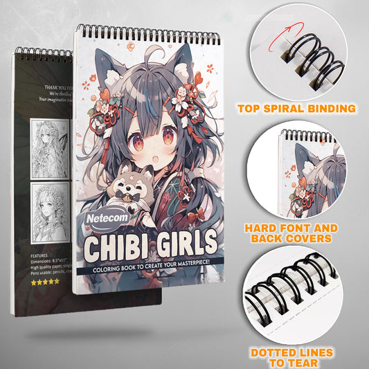 Chibi Girls Spiral Bound Coloring Book, Adorable Chi...