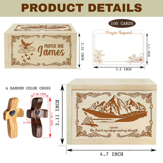 Netecom Personalized Prayer Box with Custom Name on Box and Wooden Cross – 100 Prayer Request Cards, Custom Engraved Christian Keepsake for Mom, Dad, Family, or Loved Ones
