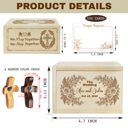 Netecom Personalized Wedding Prayer Box for Couples – Custom Names & Date with 100 Prayer Request Cards and Wooden Cross, Faith-Based Spiritual Gift