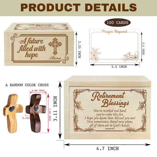 Netecom Retirement Prayer Box with Personalized Name on Cross, Christian Gift for Daily Reflection and Spiritual Encouragement