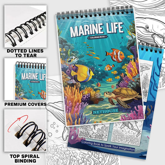 NETHOUSE Marine Life Spiral Coloring Book for Adults...