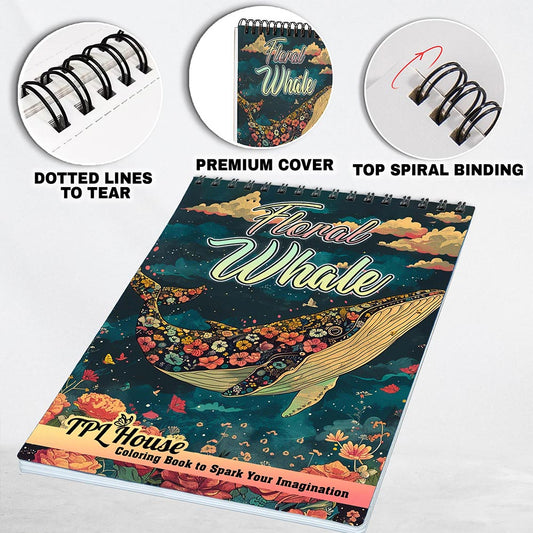 TPLHOUSE Floral Whale Coloring Book for Adults, Spir...