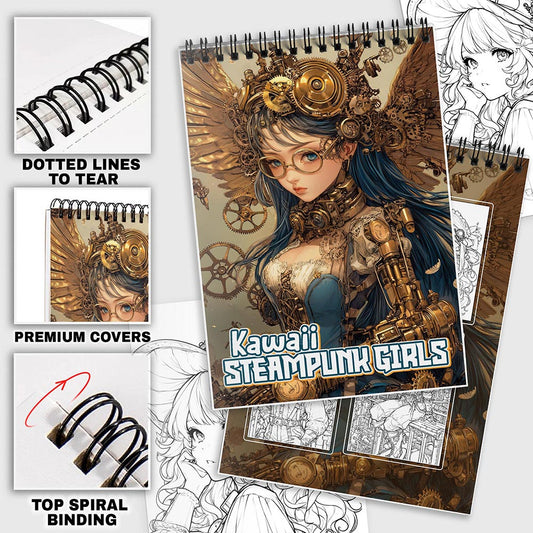 Steampunk Girls Coloring Book Spiral Bound For Adult...