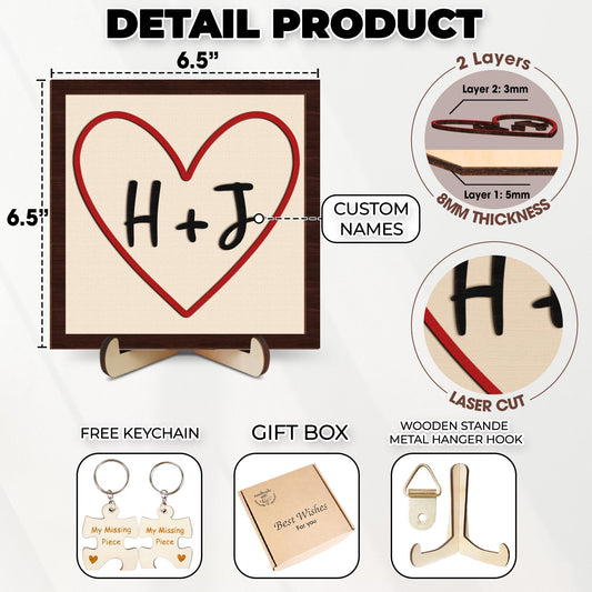 Netecom Personalized Initials Heart Wooden Sign for Couples, Custom Valentine’s Day Decor with His and Her Initials, Romantic Shelf and Tiered Tray Display, Meaningful Gift for Valentine or Anniversary