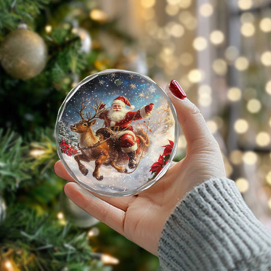 Netecom Santa Claus Riding Reindeer Glass Ornament –...