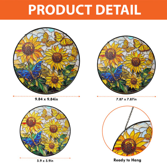 Netecom Sunflower and Butterfly Stained Glass Orname...
