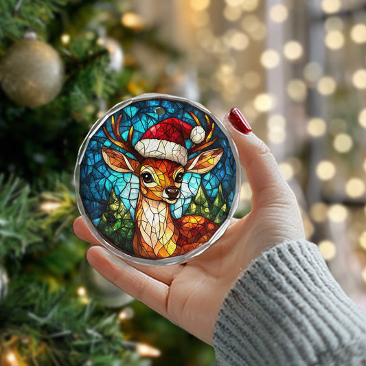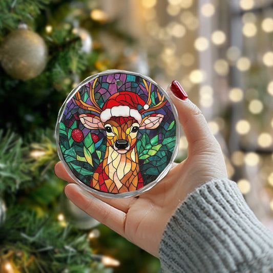 Netecom Santa Hat Reindeer Stained Glass Ornament – ...