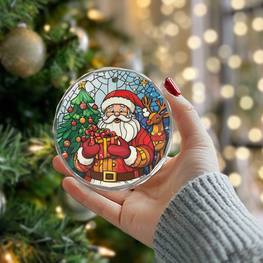 Netecom Joyful Santa Claus & Reindeer Glass Ornament...
