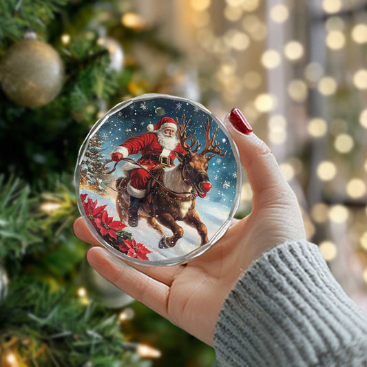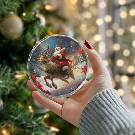 Netecom Santa Claus Riding Reindeer Glass Ornament –...